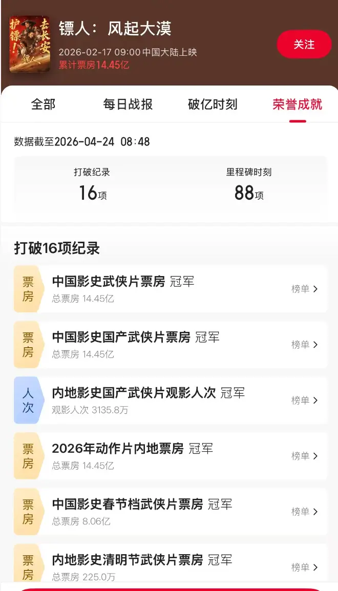 看看最新的战报吧,电影连续打破了16项票房纪录,还一路从春节档来到了五一档,不少人仍旧可以在电影院去感受中国武侠的魅力。